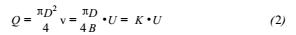 式(1)說明,導(dǎo)體在磁場內(nèi)作切割磁力線運動,導(dǎo)體兩端產(chǎn)生的感應(yīng)電動勢的大小與磁感應(yīng)強度B成正比,與導(dǎo)體的長度D成正比,與導(dǎo)體運動的速度v成正比。由式(2)可知液體的體積流量與感應(yīng)電動勢成正比,這就是測量除鹽水流量用流量計的設(shè)計原理。