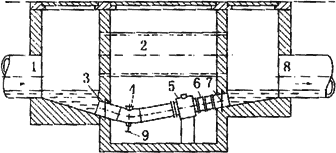 由于大口徑管道在多數(shù)場合下是埋在地下的,因此大口徑傳感器在安裝前應(yīng)做好水泥地坑。圖6-19所示是在給排水系統(tǒng)中常見的安裝形式。水泥地坑應(yīng)有足夠的活動空間,側(cè)壁埋有敷設(shè)電纜的鋼管,上有蓋板防止雨淋,下有泄水管以免坑內(nèi)積水而使傳感器侵水。為了拆裝方便,傳感器應(yīng)放在墊腳上,且在下游側(cè)裝有活絡(luò)的伸縮管。圖6-20是熱水流量計在地下水泥管污水排放系統(tǒng)中的安裝實例。