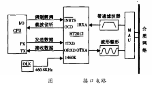 HT2012芯片用來實(shí)現(xiàn)HART協(xié)議中通訊信號(hào)的解調(diào)及調(diào)制過程。圖2為調(diào)制解調(diào)器與微處理器的連接。