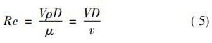 式中: V 與 D 與上文一致; ρ為流體密度,kg /m3 ; μ為流體的動力黏度,Pa·s; v 為流體運(yùn)動黏度,m2 / s。