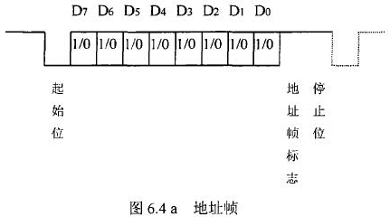 飲用水流量計(jì)等節(jié)點(diǎn)設(shè)備和站內(nèi)PC機(jī)間的通信采用異步串行通訊控制規(guī)程,并采用地址位喚醒握手協(xié)議。因此在協(xié)議中規(guī)定了傳地址和傳數(shù)據(jù)兩種不同的幀格式,如圖.64所示。地址幀和數(shù)據(jù)幀由11位構(gòu)成,幀格式為l位起始位,l位停止位,8位數(shù)據(jù)位,1位*9位。我們將*9位設(shè)定為“地址/數(shù)據(jù)指示位”,用來(lái)區(qū)分所發(fā)送/接受的幀信息是地址幀還是數(shù)據(jù)幀。*9位為1,表示PC機(jī)發(fā)送/接受的是“地址幀”*9位為O,表示主機(jī)發(fā)送/接受的是“數(shù)據(jù)幀”。命令幀與校驗(yàn)和的發(fā)送格式與數(shù)據(jù)幀相同,因此可由數(shù)據(jù)幀演化得到。
