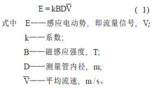 電磁流量計(jì)的基本原理是法拉*電磁感應(yīng)定律,即導(dǎo)體在磁場中切割磁力線運(yùn)動時(shí)在其兩端產(chǎn)生感應(yīng)電動勢。如圖1所示,導(dǎo)電性液體在垂直于磁場的非磁性測量管內(nèi)流動,與流動垂直的方向上產(chǎn)生與流量成比例的感應(yīng)電勢, 電動勢的方向按弗來明右手規(guī)則,其值如下式: