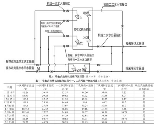 此熱力站電廠煙氣流量計(jì)的一次網(wǎng)設(shè)計(jì)供回水設(shè)計(jì)溫度為 :120℃ /36℃,二次網(wǎng)設(shè)計(jì)供回水溫度為 :80℃ /60℃。在電廠煙氣流量計(jì)工作流程中(見(jiàn)圖2),高溫?zé)嵩矗匆淮尉W(wǎng)供水)先進(jìn)入電廠煙氣流量計(jì),發(fā)生器作為驅(qū)動(dòng)熱源,換熱后進(jìn)入板式換熱器,經(jīng)板式換熱器換熱后的低溫水再次回到電廠煙氣流量計(jì)的蒸發(fā)器,放熱至36℃后返回電廠。熱用戶(hù)的二次網(wǎng)回水并聯(lián)后分別進(jìn)入電廠煙氣流量計(jì)吸收器和板式換熱器,在吸收器和冷凝器及板式換熱器中分別進(jìn)行熱交換,然后一起供給熱用戶(hù)。上述過(guò)程就是在電廠煙氣流量計(jì)啟動(dòng)時(shí),熱力站內(nèi)的實(shí)際供熱流程,在供暖季的初期和末期,可以關(guān)閉電廠煙氣流量計(jì),仍然利用板式換熱器單好換熱。