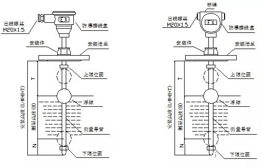 頂裝式浮球液位計是一種工業(yè)生產(chǎn)中普遍在使用的液位測量儀表,其安裝方便靈活,具有良好的適應(yīng)性,法蘭式和支架式安裝都可進行,可適應(yīng)不同的工況條件。浮球液位計是以磁浮球為測量元件,通過磁耦合作用,致使傳感器內(nèi)電阻產(chǎn)生線性變化,再通過智能轉(zhuǎn)換器將電阻變化轉(zhuǎn)換成4~20mA標準電流信號傳輸,特殊訂制的型號亦可以疊加HART協(xié)議的信號,*終能液晶方式顯示。據(jù)變送器與顯示器的不同型號,可以現(xiàn)場顯示液位的百分比、4~20mA電流及液位值,此遠傳信號可以遠傳供給控制室,以實現(xiàn)液位的自動檢測、控制和記錄。頂裝式浮球液位計適用于石油、化工、電力、輕工及醫(yī)藥等行業(yè)污水處理及各類常壓和承壓容器內(nèi)介質(zhì)液位的測量,是測量各類貯罐、地下貯槽的*為理想的液位計產(chǎn)品。