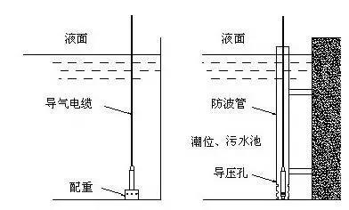 1、纜式投入式液位計(靜壓式水位計)通常投入直徑大于水位計直徑的的PVC管、鋼管,管道固定在水中,不同高度打若干小孔,以便水通暢進(jìn)入管內(nèi)?;蛘咴诘撞考友b阻尼裝置,以過濾泥沙和消除動態(tài)壓力和波浪對測量的影響。