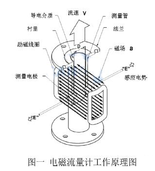 電磁流量計(jì)的測(cè)量原理是基于法拉*電磁感應(yīng)定律:即導(dǎo)體介質(zhì)在磁場(chǎng)介質(zhì)中切割磁力線運(yùn)動(dòng)時(shí)在其兩端產(chǎn)生感應(yīng)電動(dòng)勢(shì)。如圖1所示,導(dǎo)電介質(zhì)在垂直于磁場(chǎng)的非磁性測(cè)量管內(nèi)流動(dòng),與流動(dòng)方向垂直的方向上產(chǎn)生與流量成比例的感應(yīng)電勢(shì),電動(dòng)勢(shì)的方向按“弗來明右手規(guī)則”,其感應(yīng)電勢(shì)E為:E=KBVD式中:E---感應(yīng)電動(dòng)勢(shì)(與流速成正比);K---比例常數(shù);B---磁場(chǎng)強(qiáng)度(線圈電感);V---測(cè)量管內(nèi)介質(zhì)的平均流速;D---電極間距(測(cè)量管的內(nèi)徑)